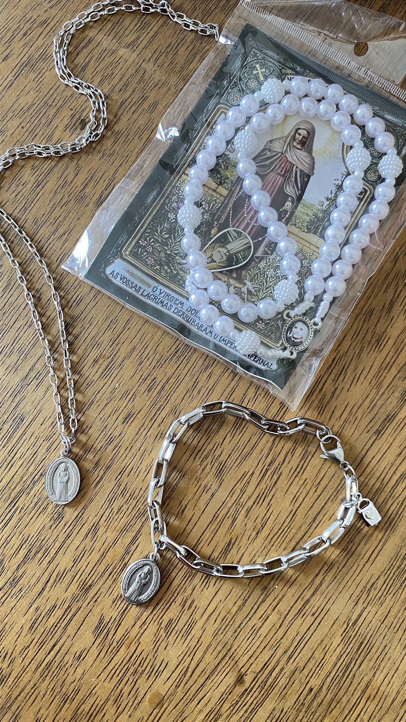 + Cordão de Pescoço inox com medalha de Nossa Senhora das Lágrimas inox.